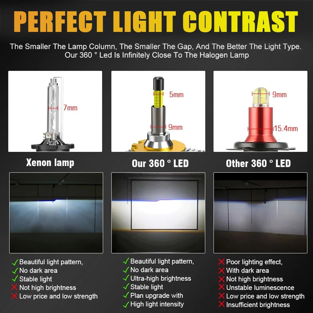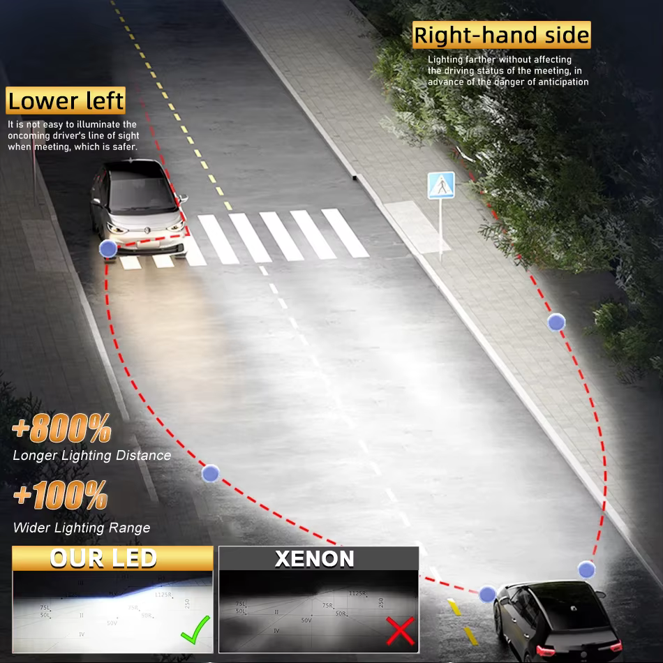 Cu o putere reala de 190W si un flux luminos impresionant de 30.000 lumeni, aceste becuri depasesc performanta oricarui sistem de iluminare traditional. +900% mai multa lumina comparativ cu becurile halogen standard!