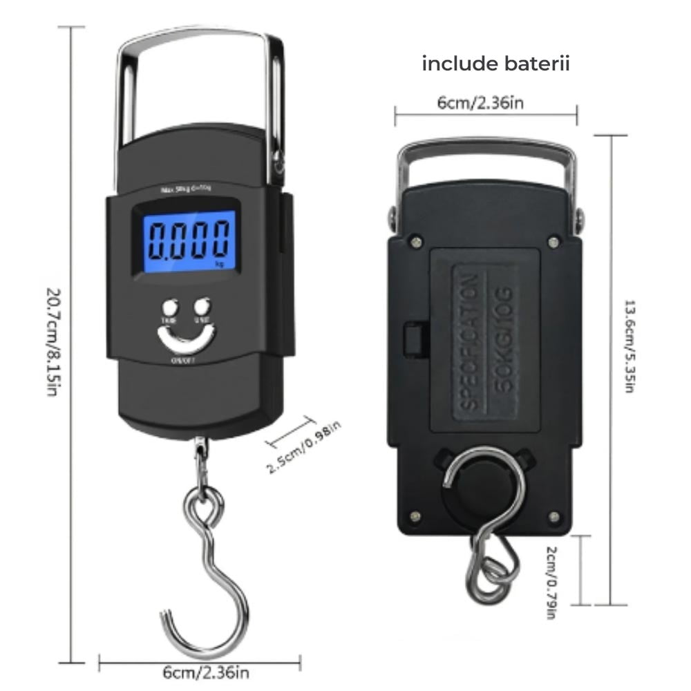 Acest cantar electronic portabil este compact si usor de transportat, astfel incat puteti sa-l aveti mereu la indemana. Poate fi folosit pentru pescuit, calatorii, in bucatarie sau oriunde aveti nevoie de masuratori precise de greutate. Este un instrument versatil si convenabil, care face viata mai usoara.
