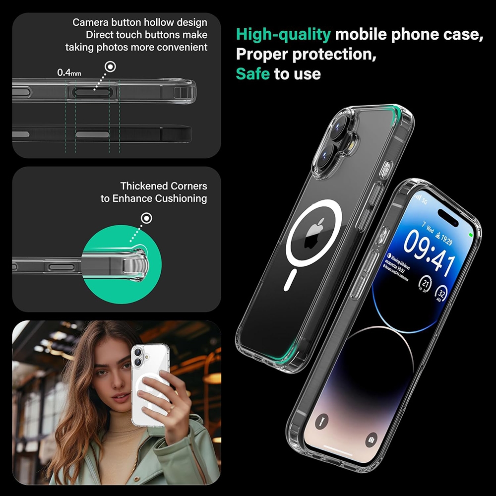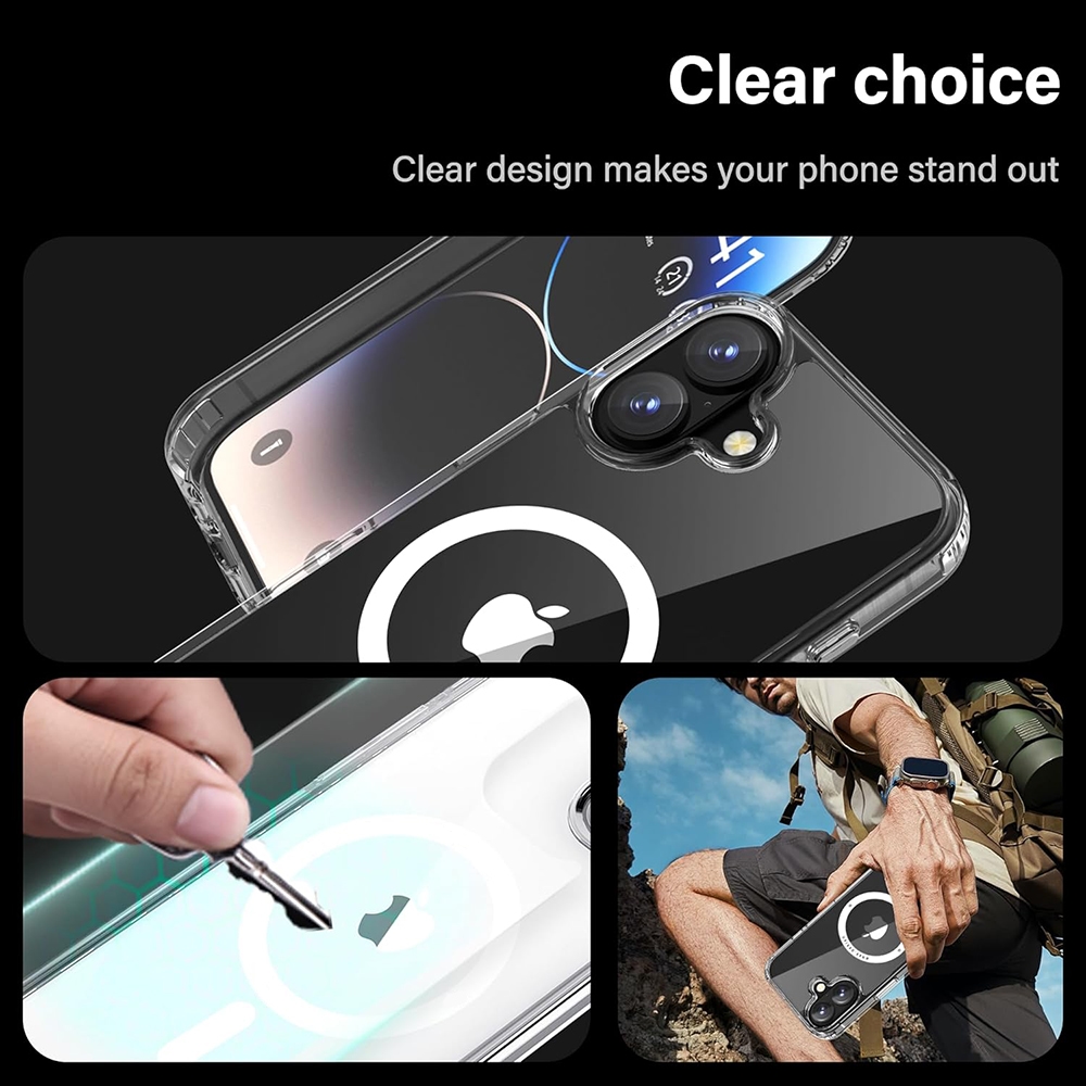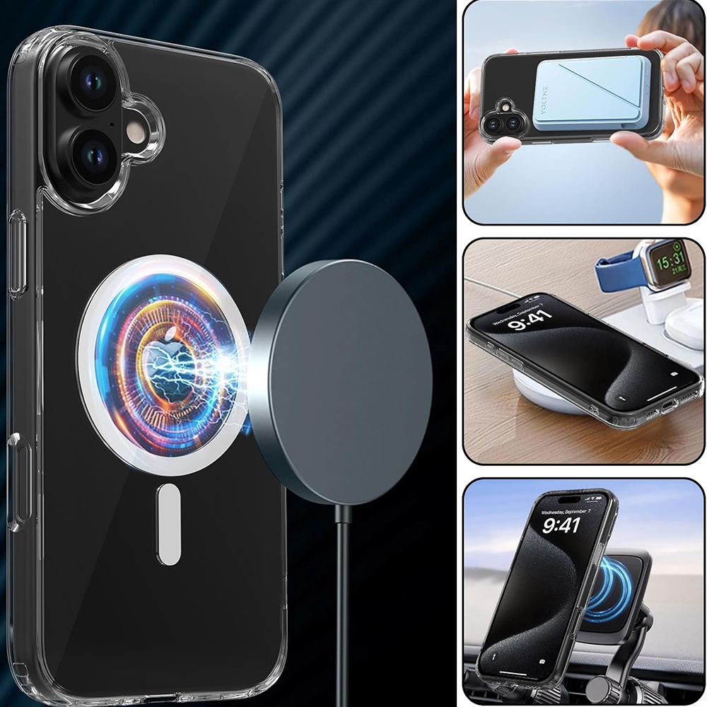 Husă iPhone 16 Transparentă SONORH®, Compatibilă MagSafe, Silicon Premium, Rezistentă la Șocuri și Zgârieturi, Design Slim, Protecție Cameră și Ecran, Wireless Charging