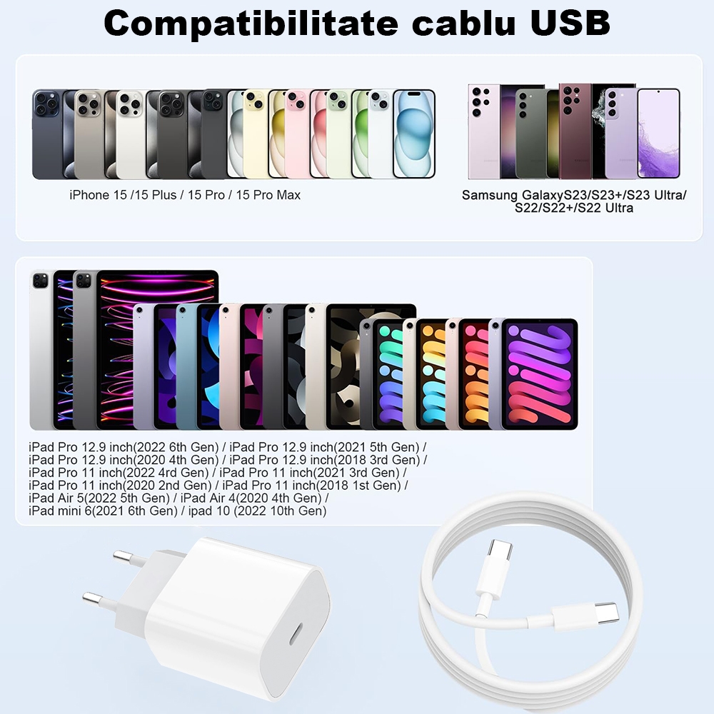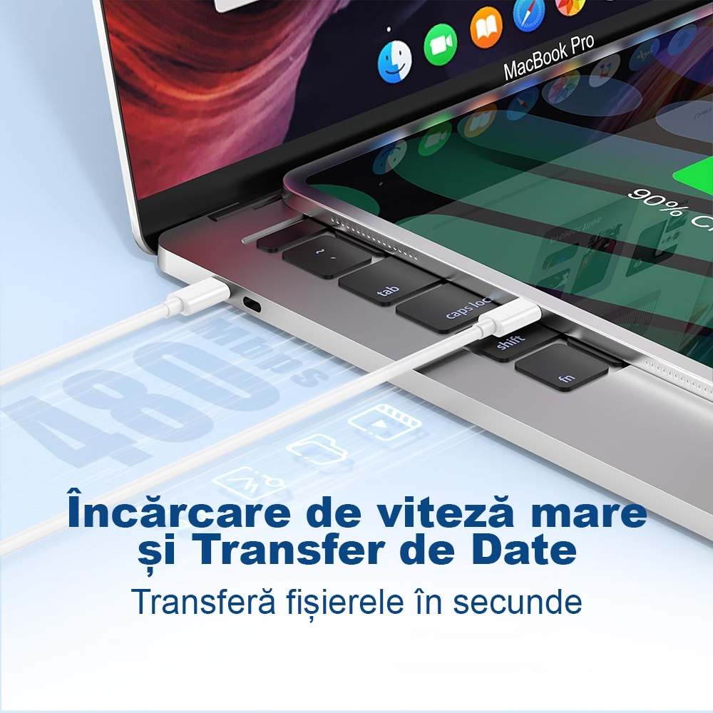 Include cablul USB-C la USB-C pentru încărcare rapidă și transfer date