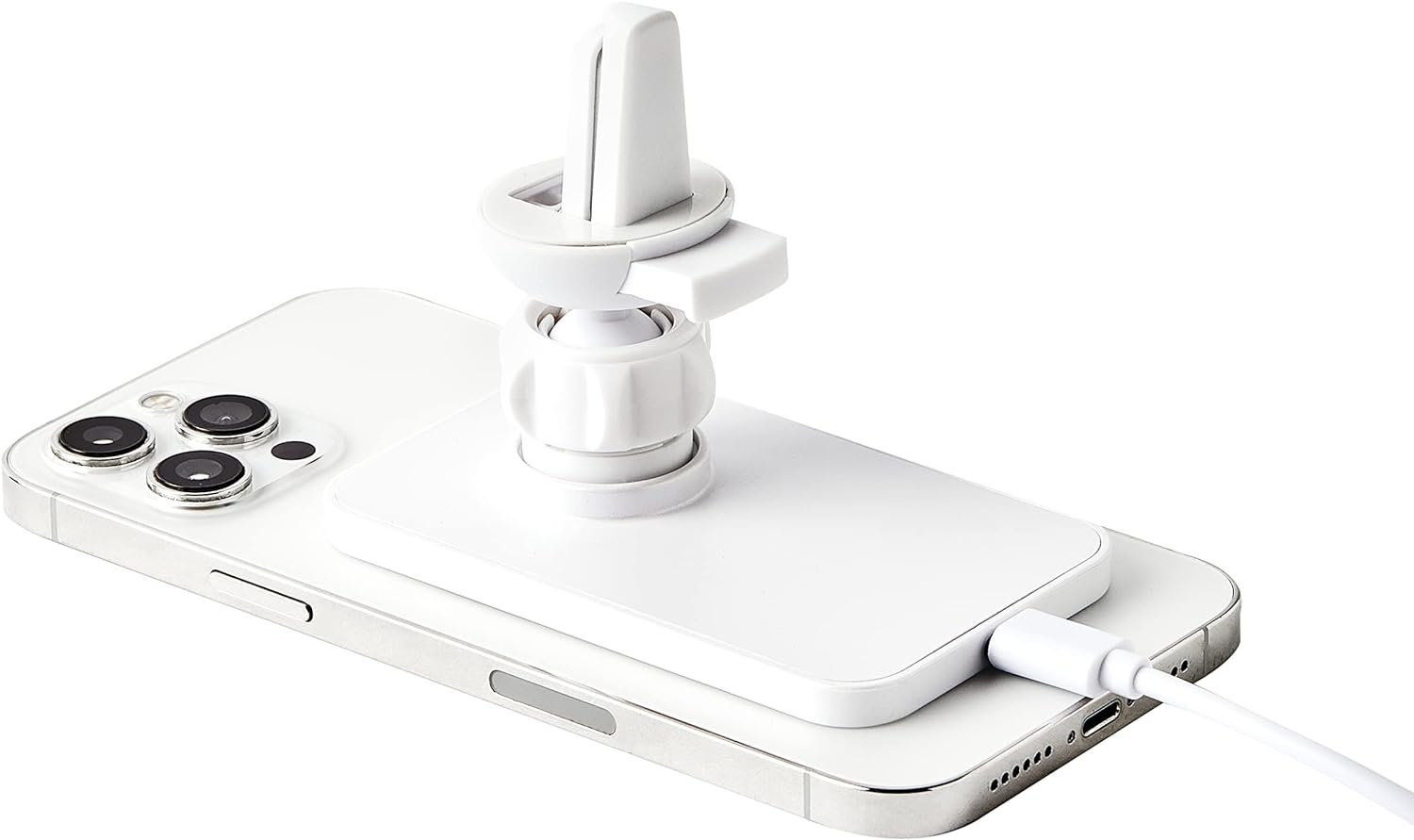 Incarcator Wireless Magnetic cu Suport Auto, Fast Charge 15W, compatibil MagSafe iPhone si Samsung, cablu USB-C inclus, SONORH®, Alb
