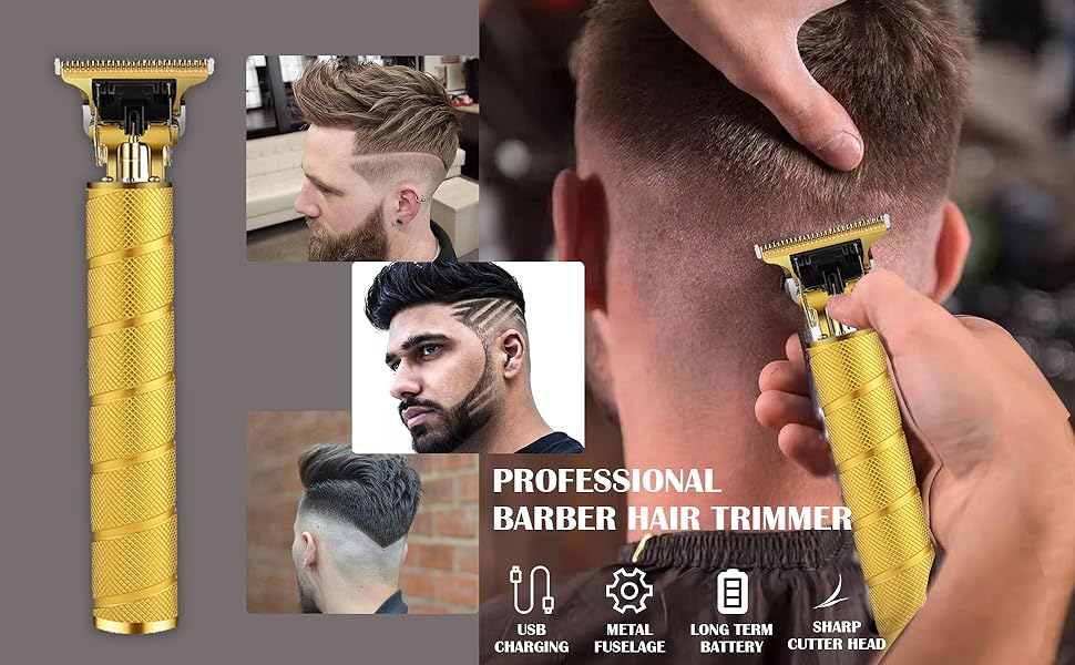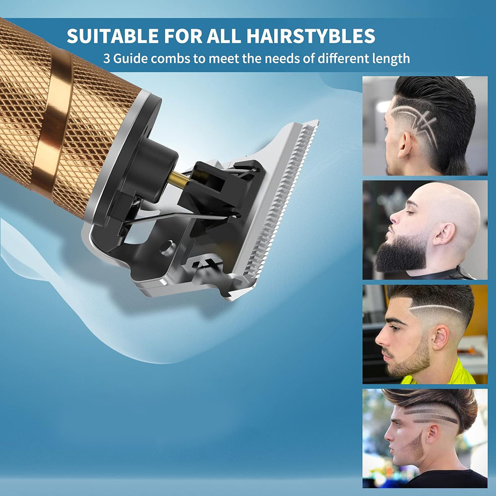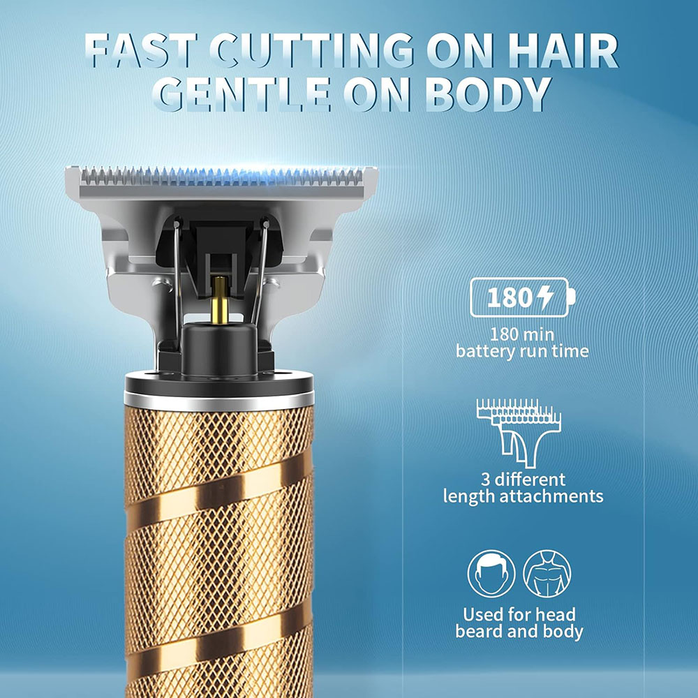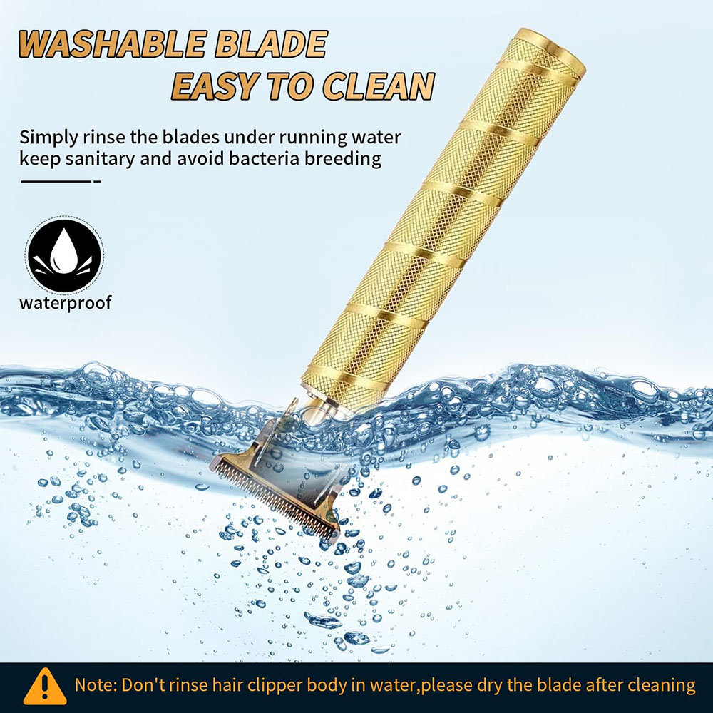 Masina de Tuns cu Acumulator, USB, Aparat de Barbierit si Tuns Barba Profesional, Incarcare Rapida, fara Fir, cu Lame din Otel Inoxidabil, SONORH®, Auriu