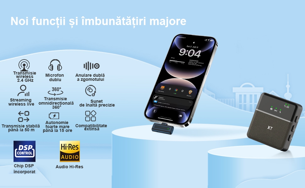 Acest microfon oferă sunet clar și stabil, autonomie bună și funcționare simplă fără aplicație și fără configurări complicate. Se conectează imediat prin Plug & Play și este pregătit pentru înregistrare în mai puțin de 3 secunde.