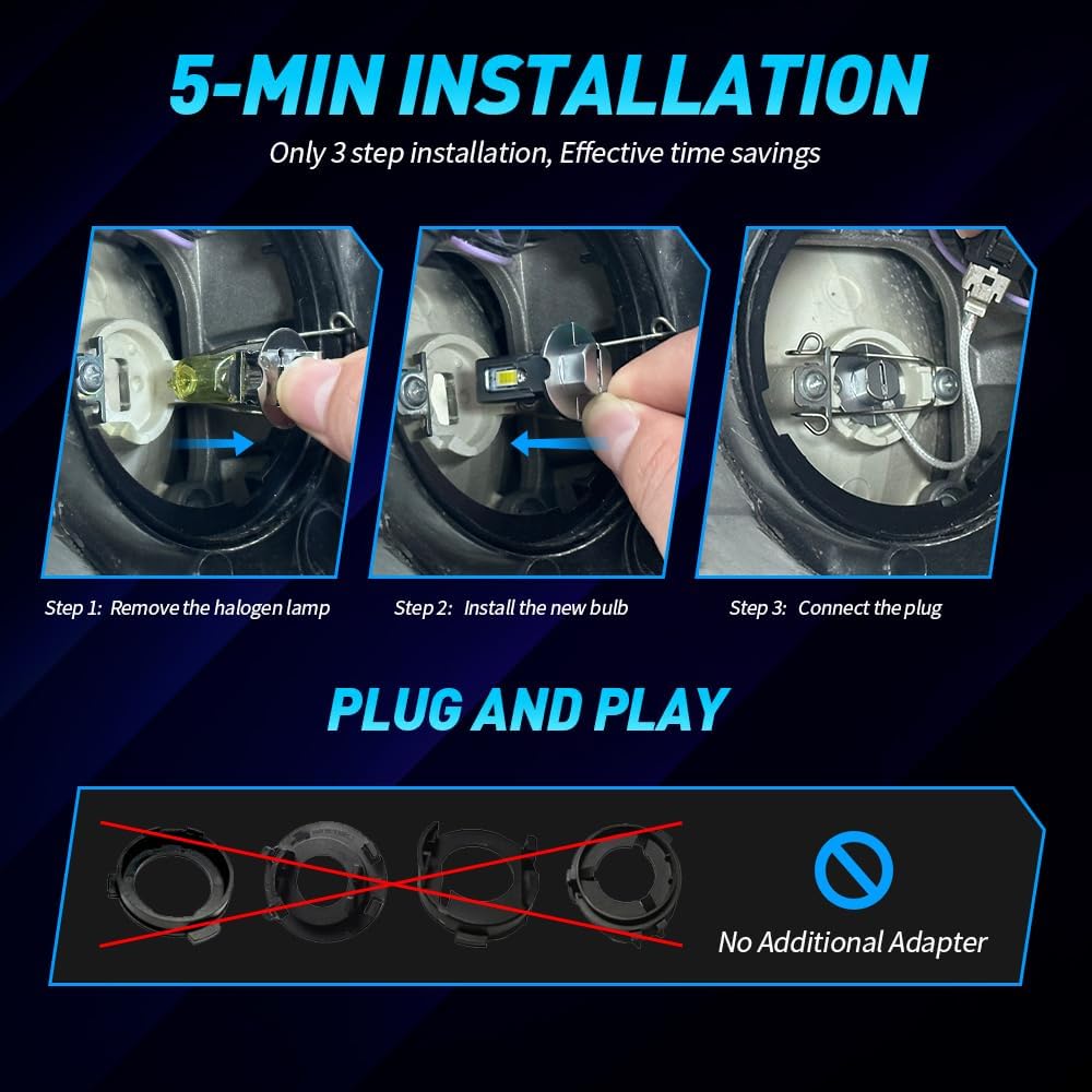 • Montaj Plug & Play – instalare simpla pe majoritatea masinilor cu soclu H3, fara modificari complexe