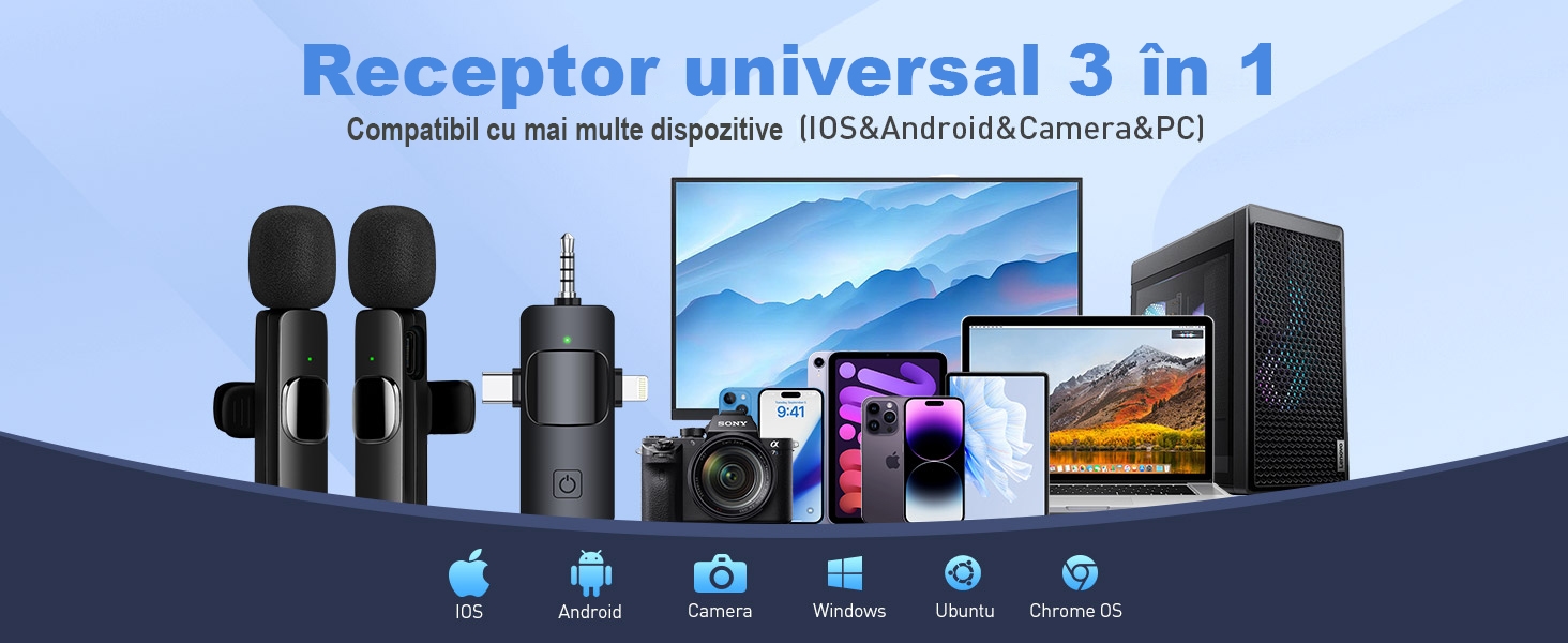 • Compatibil universal: Android, iPhone, laptop, tabletă, cameră foto/video, DSLR