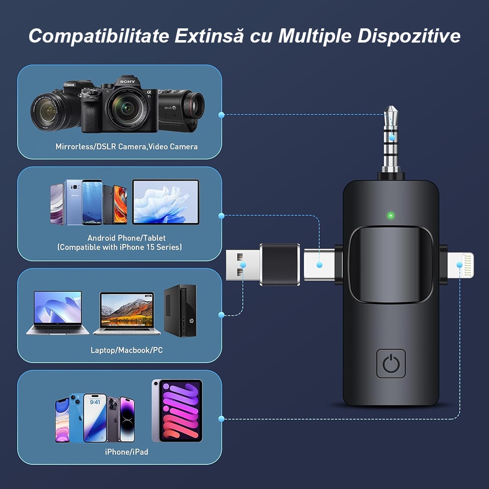 • Compatibil universal: Android, iPhone, laptop, tabletă, cameră foto/video, DSLR