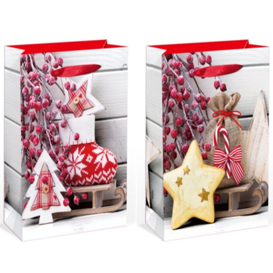 Fiecare punga este decorata cu detalii tematice de sarbatori, inspirate din atmosfera calda si festiva a Craciunului.