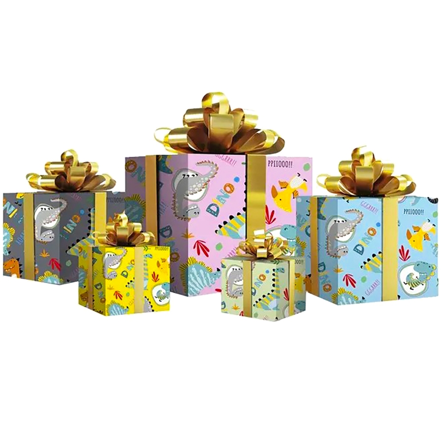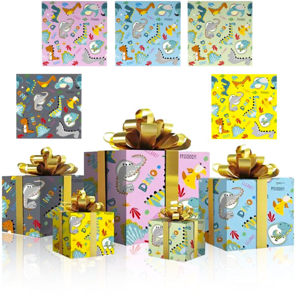 Set 3 Role Hartie de Ambalat Cadouri pentru Copii, 200x70cm, Model Dinozauri Colorati, pentru Zile de Nastere si Sarbatori
