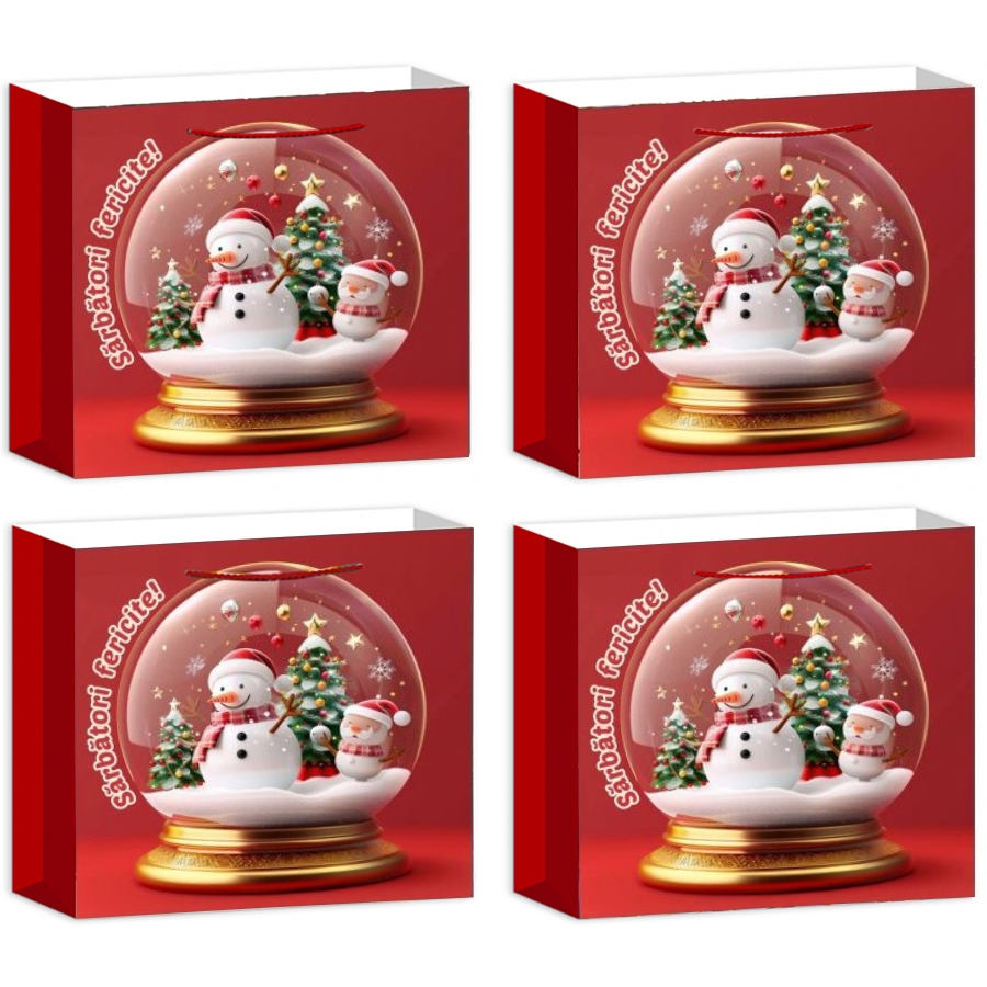 Set 4 Pungi Cadou de Craciun, 30×30×20 cm, Modele Premium cu Tematica de Sarbatori, pentru Cadouri de Craciun si Mos Nicolae, 088688