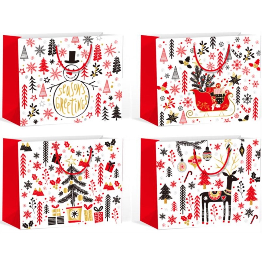 Set 4 Pungi Cadou de Craciun, 32×25×11 cm, Modele Premium cu Tematica de Sarbatori, pentru Cadouri de Craciun si Mos Nicolae, E5539