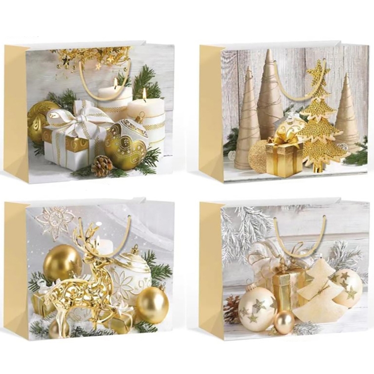 Set 4 Pungi Cadou de Craciun, 38x30x12 cm, Modele Premium cu Tematica de Sarbatori, pentru Cadouri de Craciun si Mos Nicolae, E5127