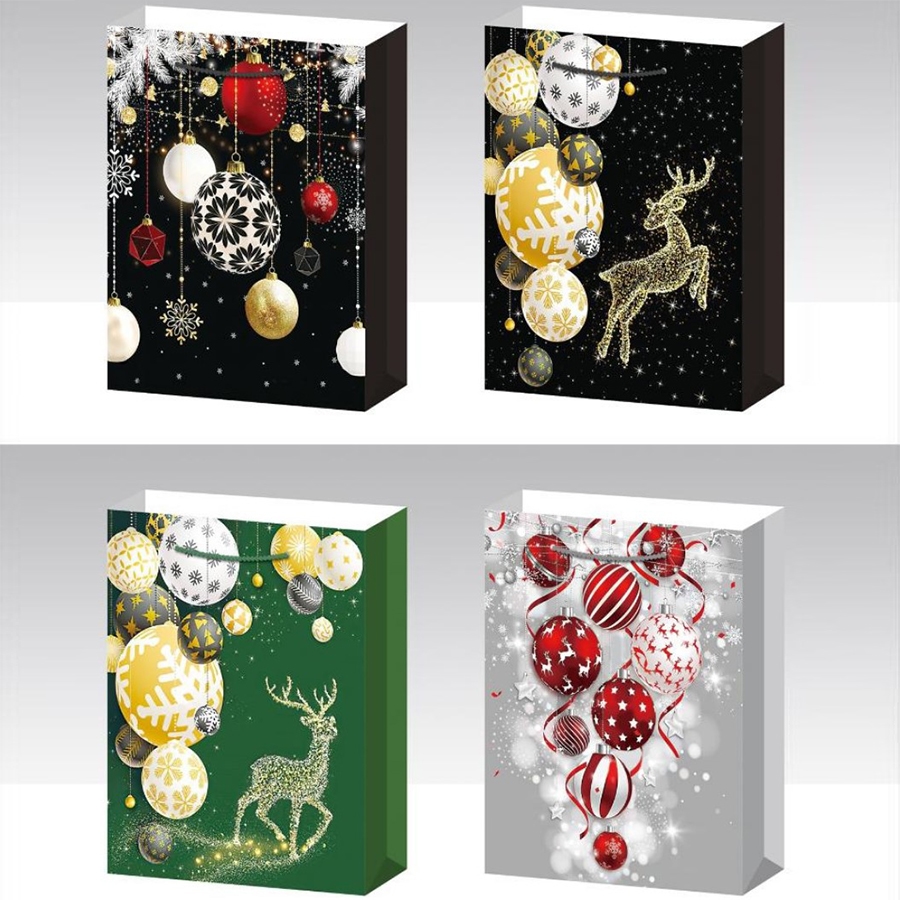 Set 4 Pungi Cadou de Craciun, 40×31×12 cm, Modele Premium cu Tematica de Sarbatori, pentru Cadouri de Craciun si Mos Nicolae, E5494