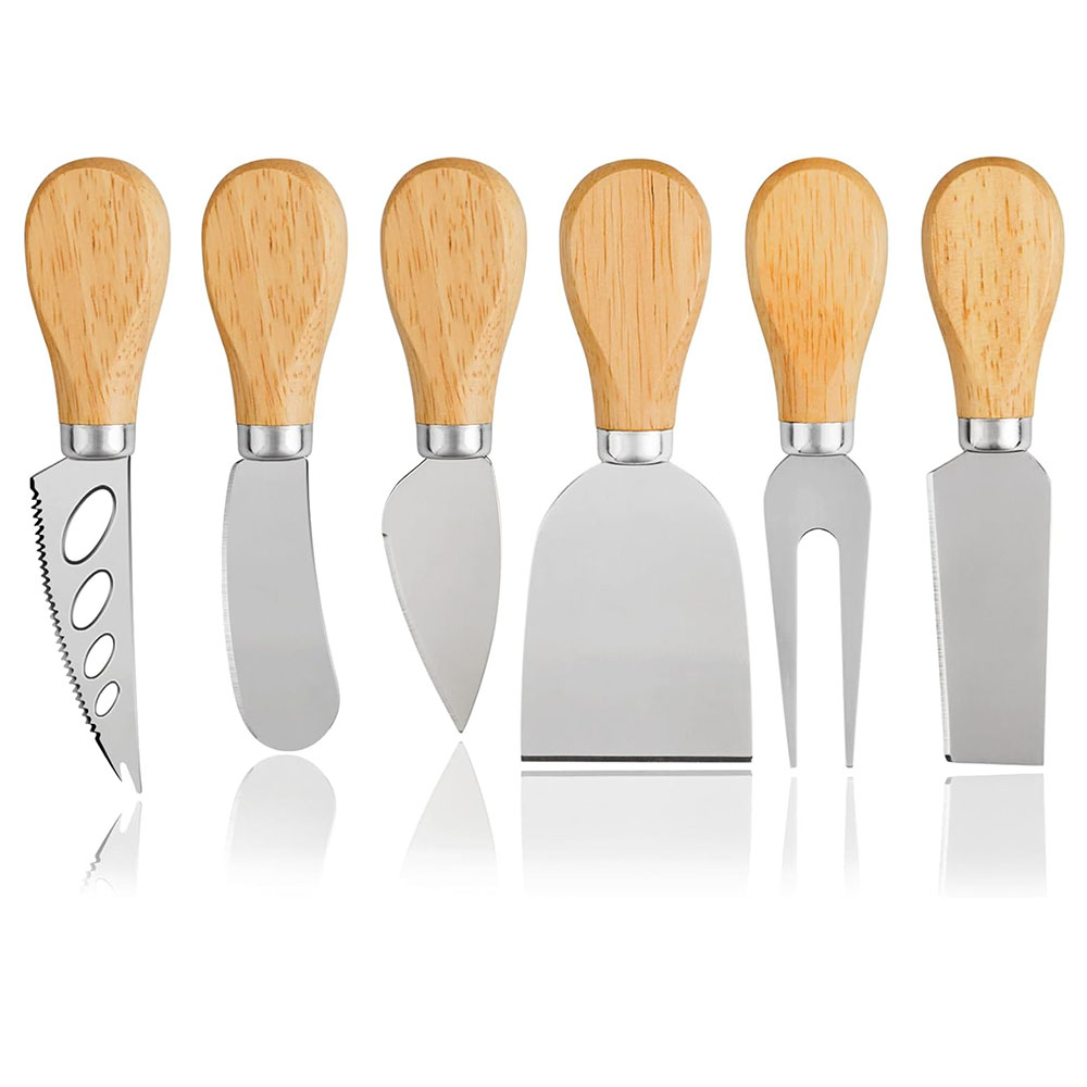 Set de 6 Cutite pentru Branzeturi si Aperitive, Otel Inoxidabil, Manere din Bambus, SONORH®
