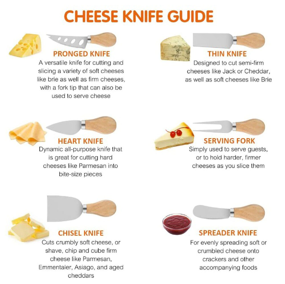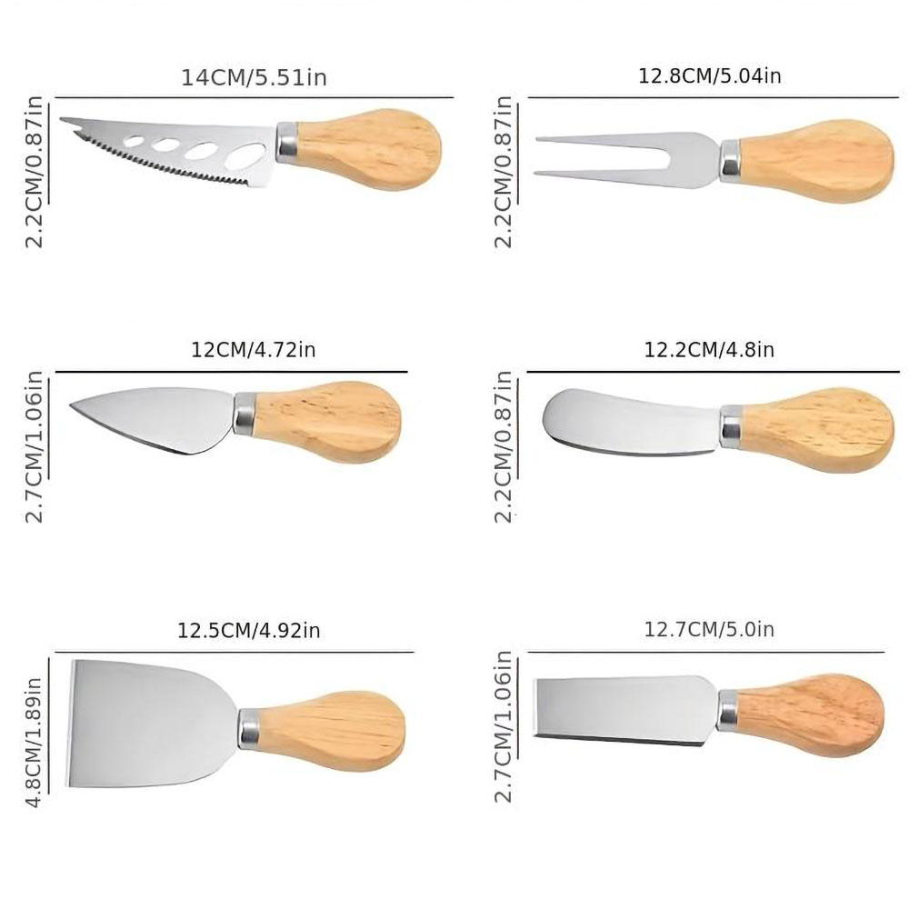 - Set Complet de 6 Cutite: Beneficiaza de o varietate de cutite pentru a satisface toate nevoile tale de servire a branzeturilor si aperitivelor in diverse ocazii.