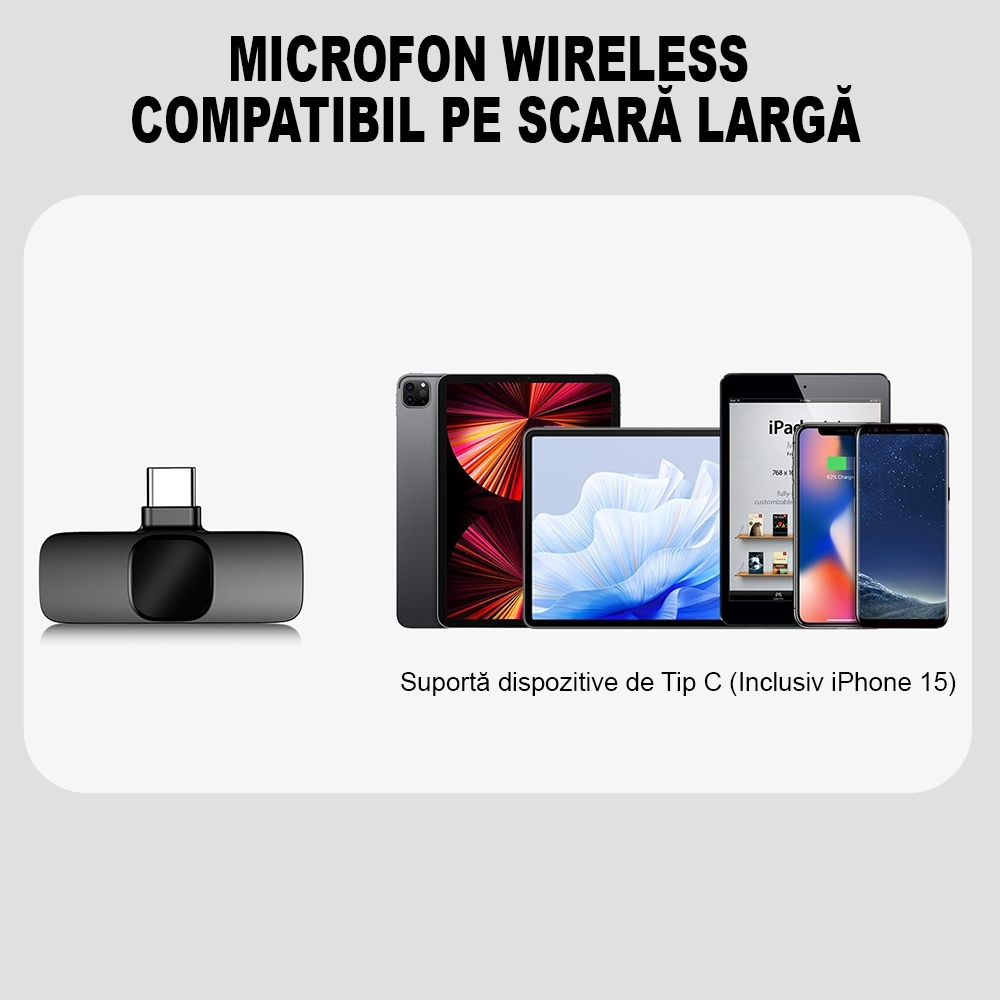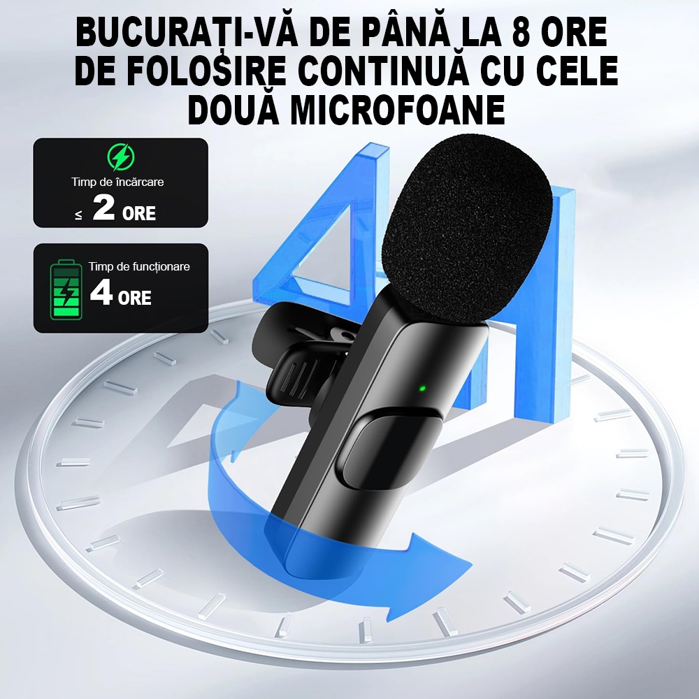 Set Profesional SONORH – 2 Microfoane Lavalieră Wireless, Compatibil Type-C, Noise Reduction, Compatibil