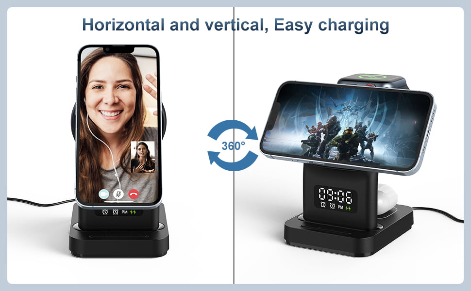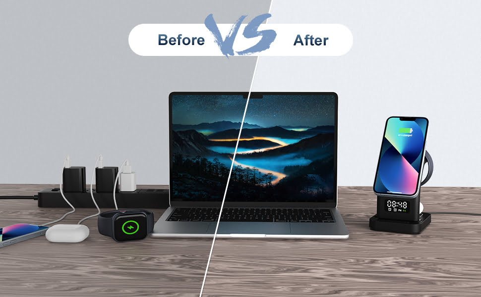 ✅ Capabilități de Încărcare Multiple: Această stație de încărcare SONORH® nu este destinată doar pentru iPhone-ul dumneavoastră, ci poate încărca și simultan iWatch-ul, AirPods-urile, Samsung-ul si Huawei-ul dumneavoastră, făcând-o soluția perfectă pentru încărcarea totul-în-unu. Spuneți adio cablurilor dezordonate și încărcătoarelor multiple și salutați o stație de încărcare curată și organizată.